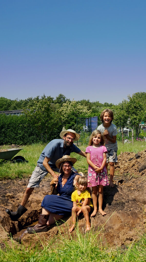 Samen met onze 3 jonge kinderen transformeren we dit terrein in de loop der jaren tot een harmonieuze, veerkrachtige plek.